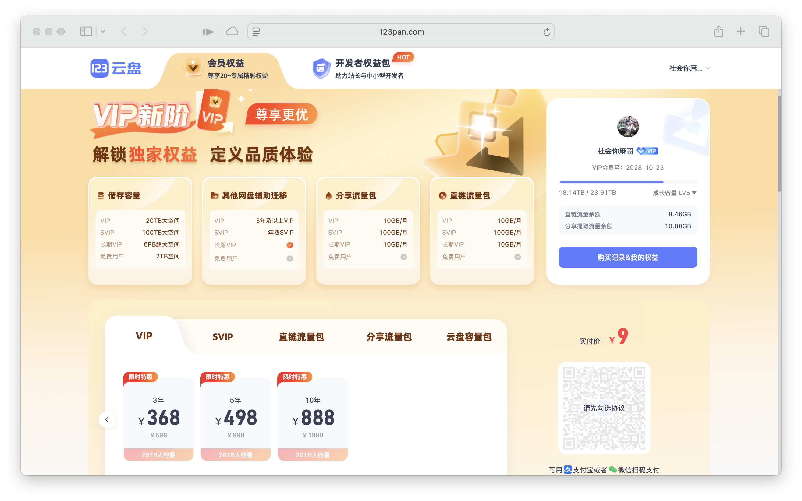123 网盘 3 年240 块钱,5 年320 块钱(这个是以前的,现在不是了~),现在是3 年368,5 年 498,10 年 888。