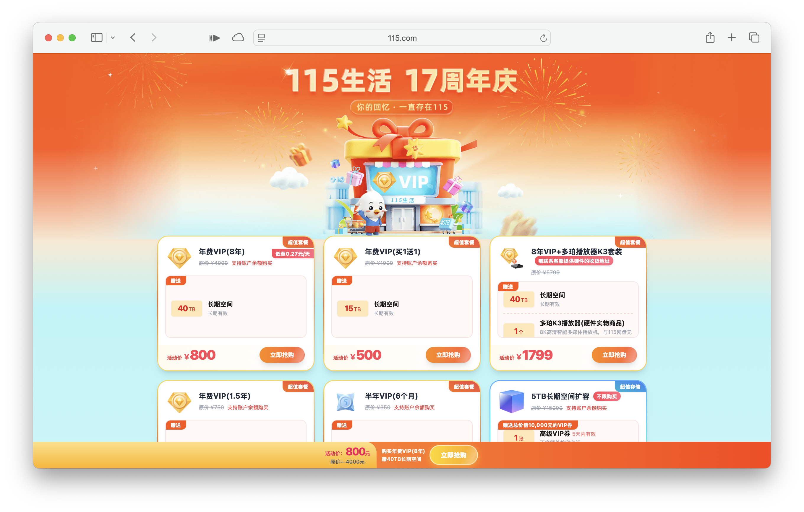 115 网盘现在 8 年 vip 只需要 800 块钱(经销商 750),平均下来一年 100 块钱。
