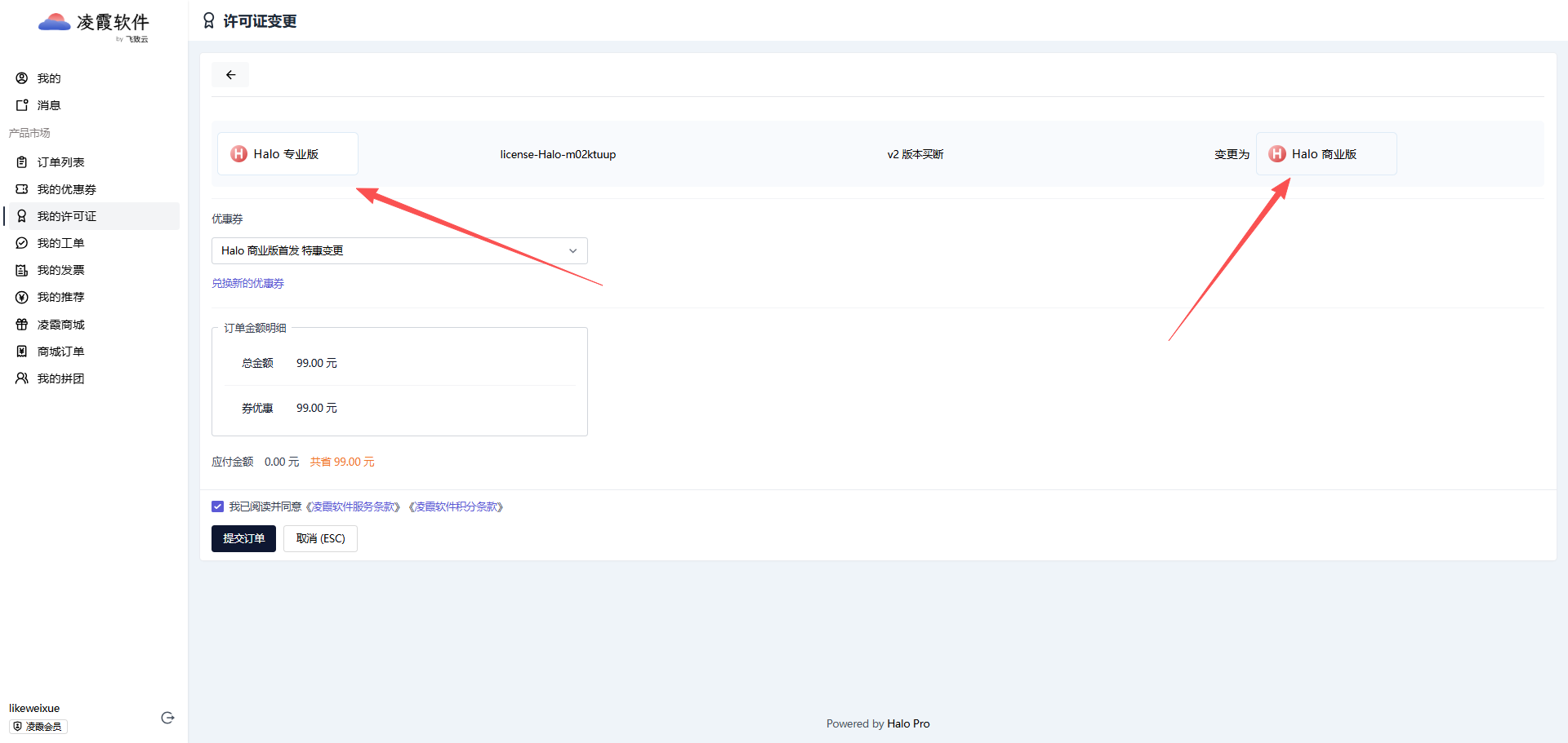 ps;感觉有漏洞,比如我有10个专业版的Halo,如果升级,就需要99x9=891,实际上我可以注册9个凌霞账号,然后吧我的9个专业版分别赠送给我我其他账号,这样子每一个账号免费升级之后再转回来给我~