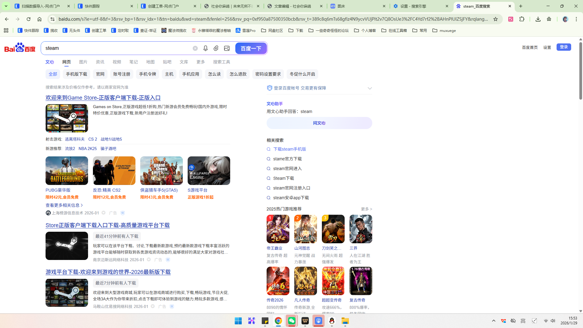 我在这里也吐槽一下国内的环境,真集霸恶心,比如现在用百度搜索引擎搜索steam。